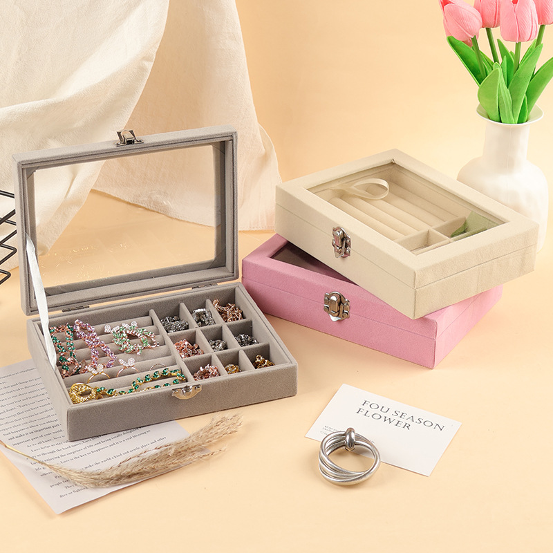 Large Capacity Flannel Anti-oxidation Jewelry Box 2025 New High-grade Necklace Earrings Ring Transparent Storage Box