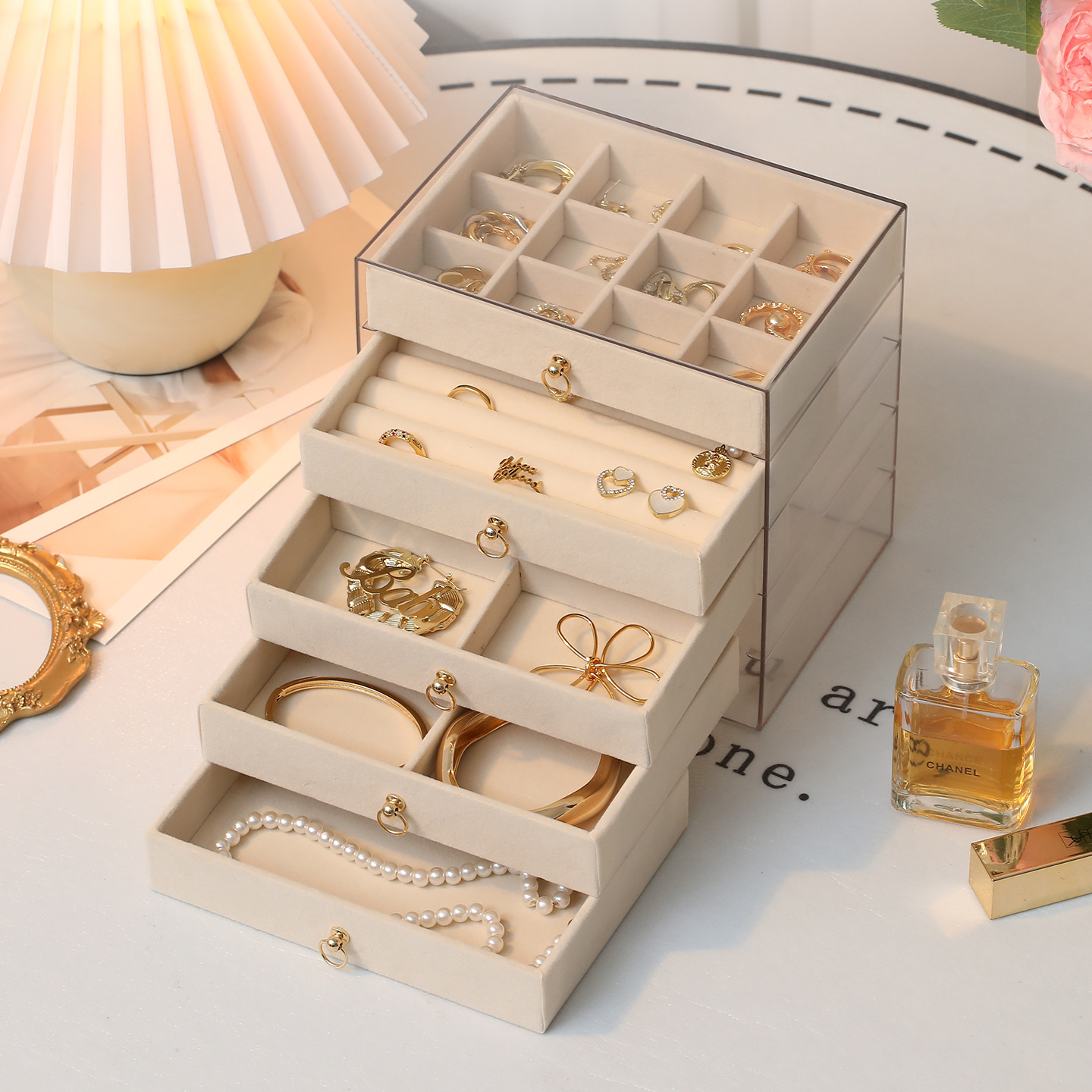 Cross-Border Jewelry Box Multi-Layer Drawer-Type Anti-Oxidation Niche Four-Color Earrings Jewelry Storage Box Ready for Sale