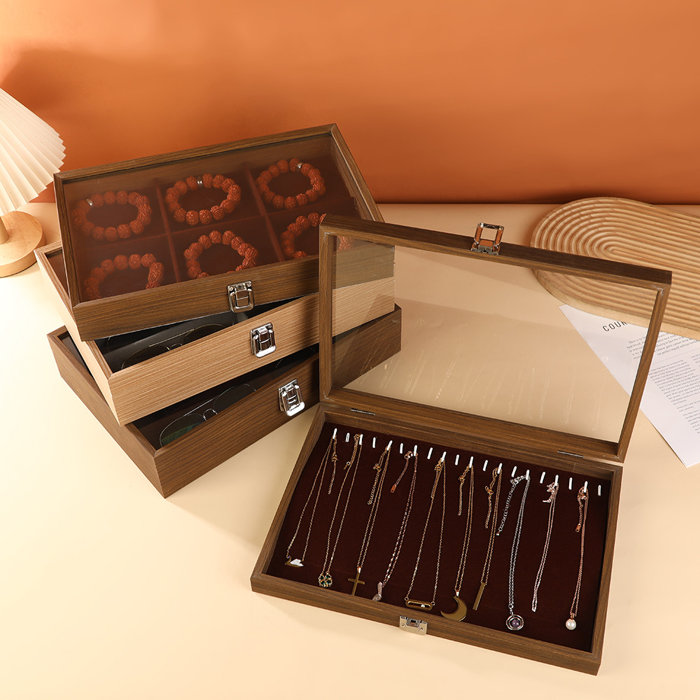 High-End Walnut Pattern Wooden Transparent Glass Lid Jewelry Box Dust-Proof Bracelet Bracelet Jewelry Storage Box