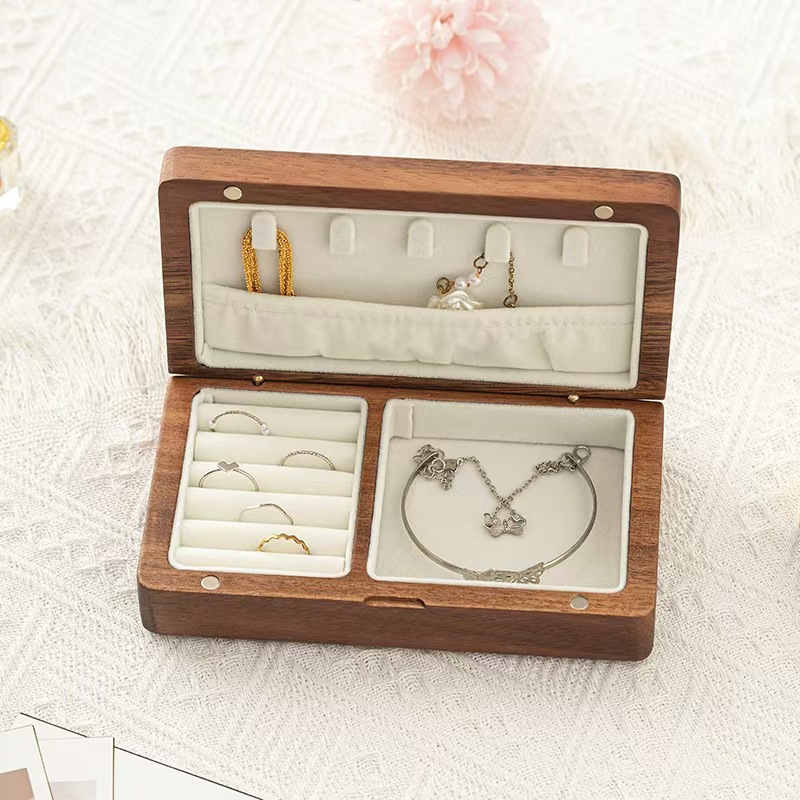 Walnut Solid Wood Jewelry Storage Box Exquisite High-End Jewelry Ring Earrings Gold Jewelry Storage Box Jewelry Box