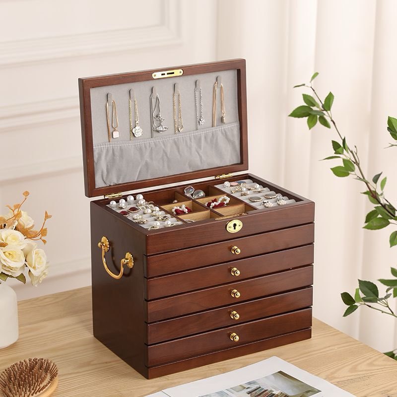 Wooden Jewelry Box Home Dressing Table Jewelry Trinket Collection Box with Lock Gift Wooden Box Cosmetic Box