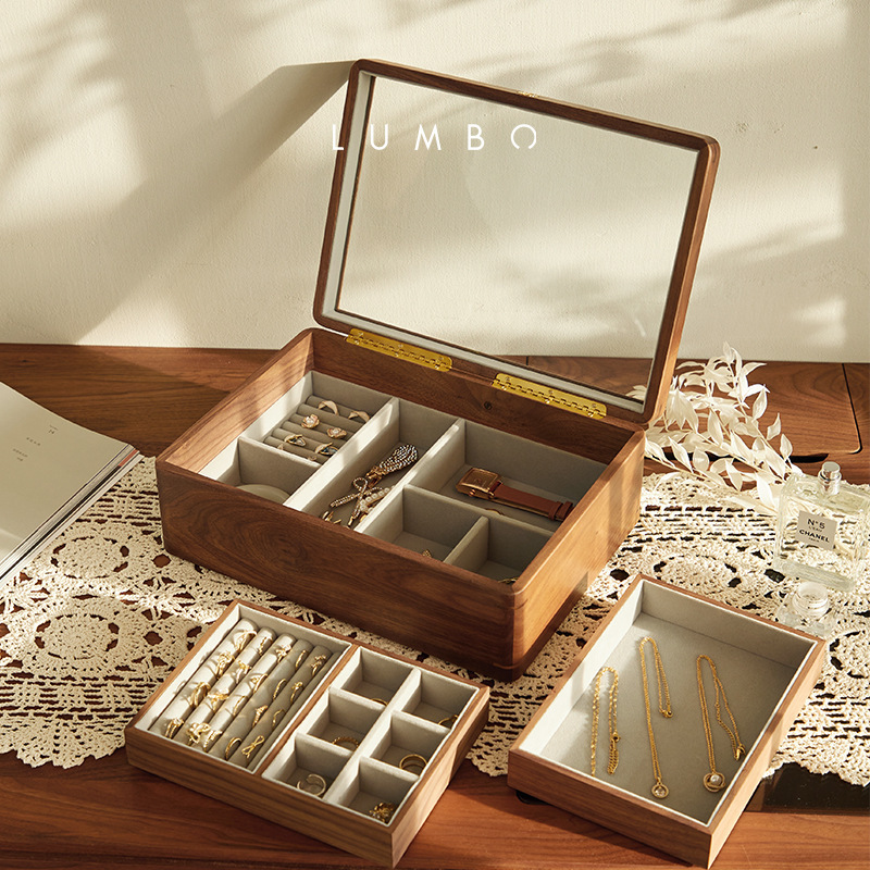 Walnut Multi-size Jewelry Storage Box Household Jewelry Ring Storage Box Wooden Square Jewelry Box