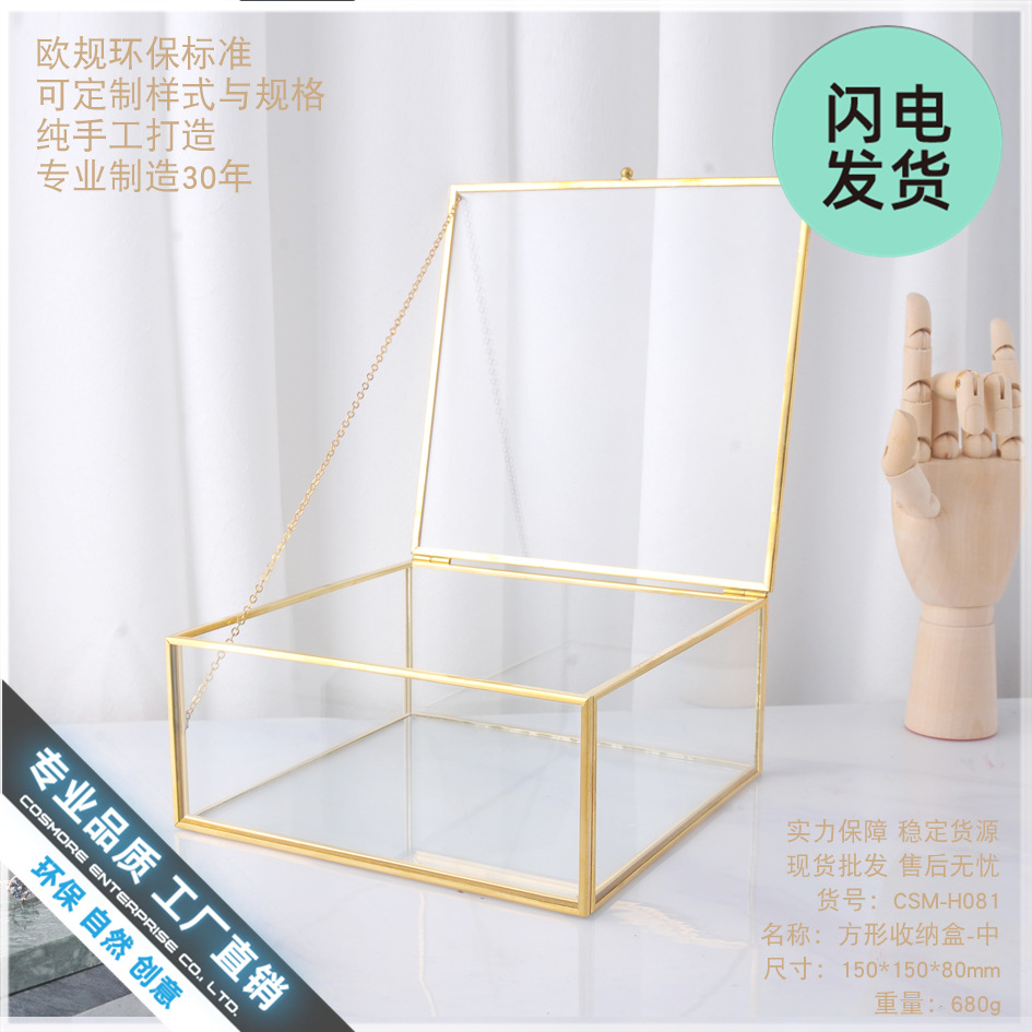 Spot Begonia Flower Glass Wooden Box Household Dust-Proof Flip-Top Jewelry Box Glass Desktop Storage Box Miscellaneous Storage Box