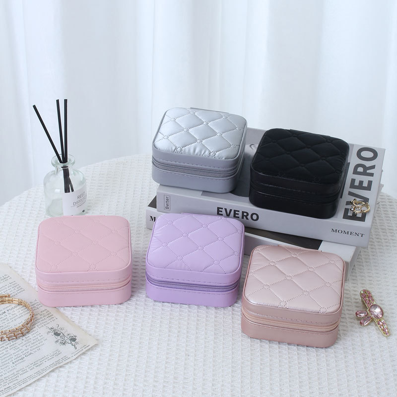 Niche Solid Color Jewelry Box Creative Ring Earrings Storage Dust-proof Box Ins-style Simple Portable Zipper Jewelry Box