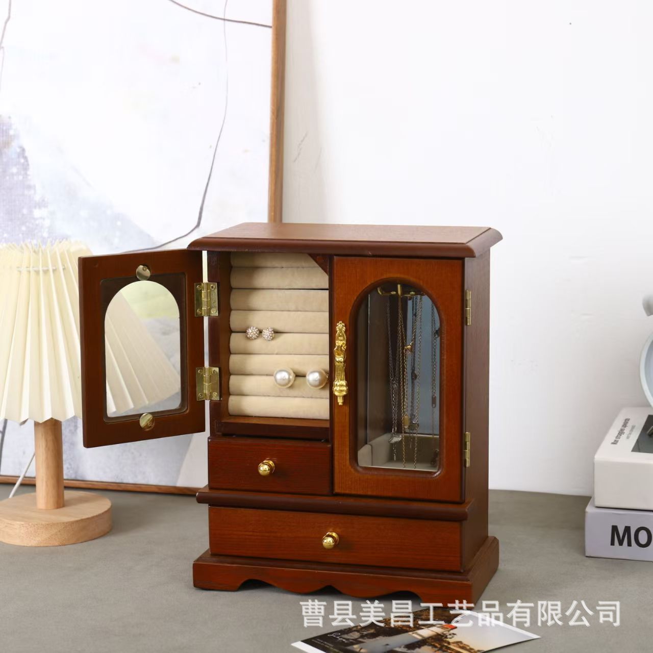 Vintage Jewelry Box New Chinese Necklace Jewelry Storage Box Wooden Jewelry Display Box Drawer Jewelry Storage Box
