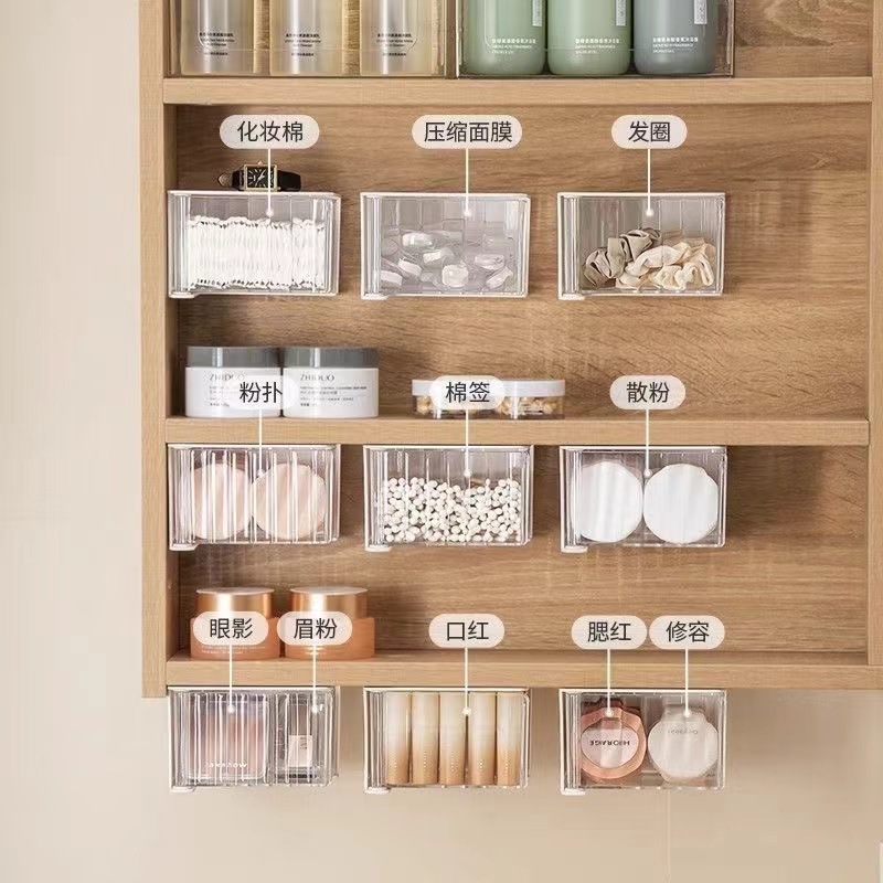 Wall-Mounted Rotating Storage Box Mirror Cabinet Jewelry Box Cosmetics Storage Box Bathroom Dust-Proof Hairpin Hair Band Storage Box