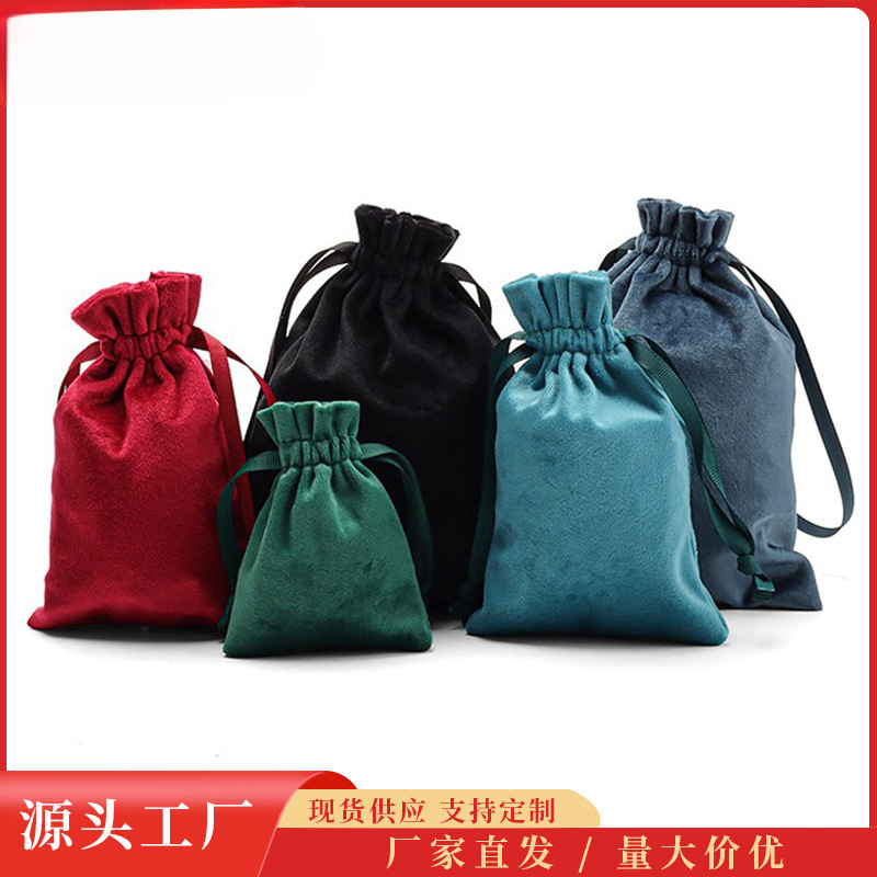 Velvet Drawstring Bag for Jewelry, Jade Bracelet, and Accessories Storage with Large Fabric Strap