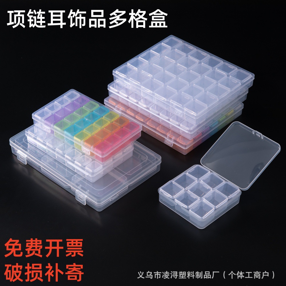 New 18+2 Large Grids Fixed Card Slot Pp Plastic Transparent Storage Box Wholesale Jewelry Necklace Dustproof Jewelry Box