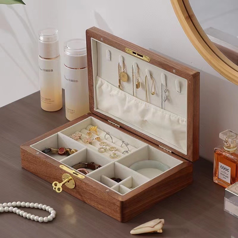 Wooden jewelry box high-grade solid wood storage earrings necklace storage box high-end exquisite portable jewelry box with lock