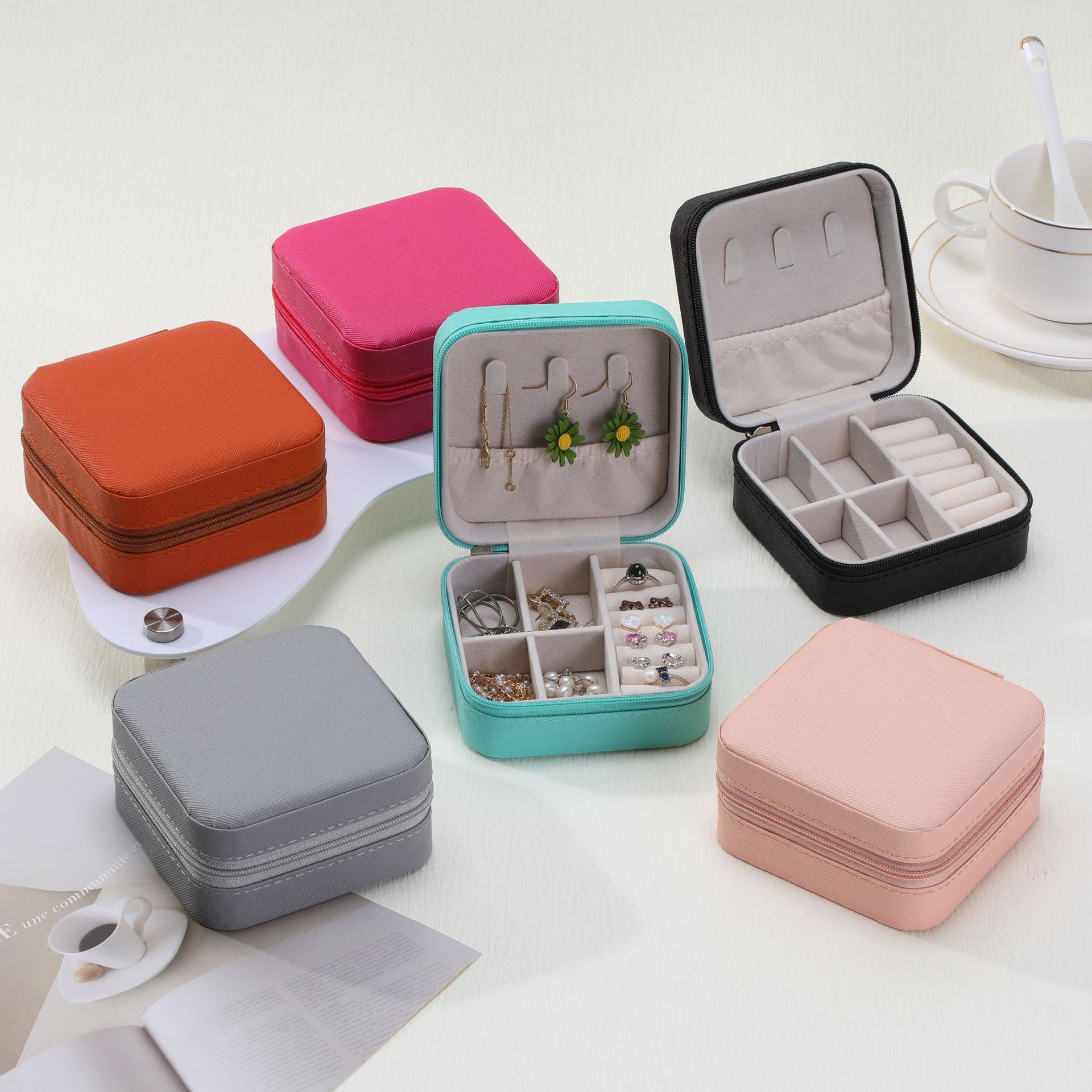 Cross-Border Simple and Portable Zipper Jewelry Storage Box for Rings, Necklaces, Bracelets, Earrings, Ear Studs, Travel Jewelry Accessories