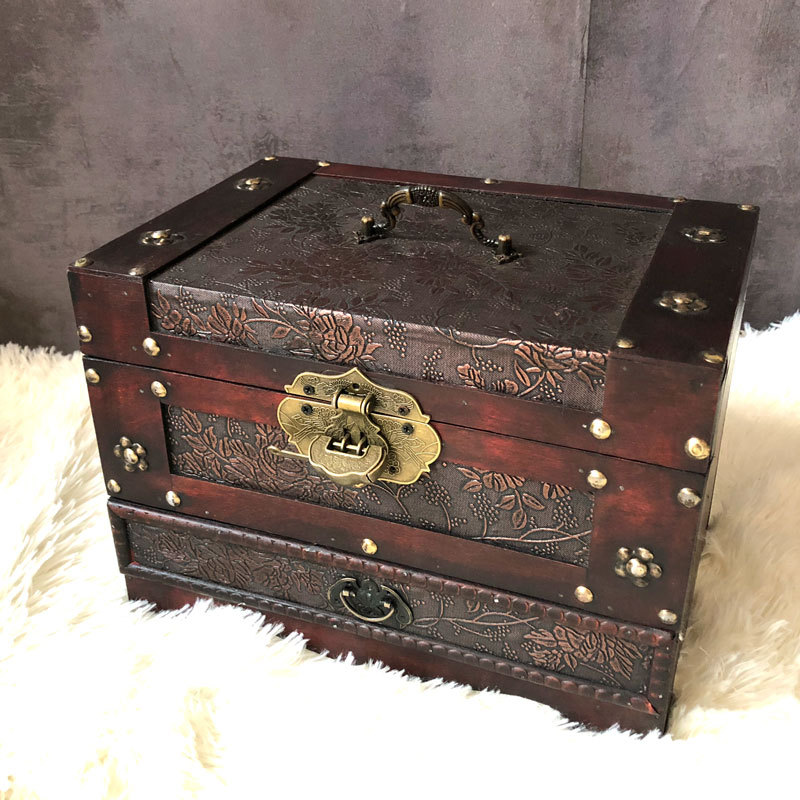 Chinese style lock jewelry box antique wooden antique dressing box retro European style storage box shooting props decoration