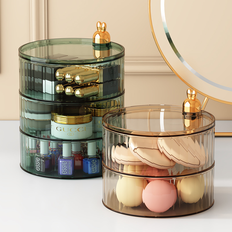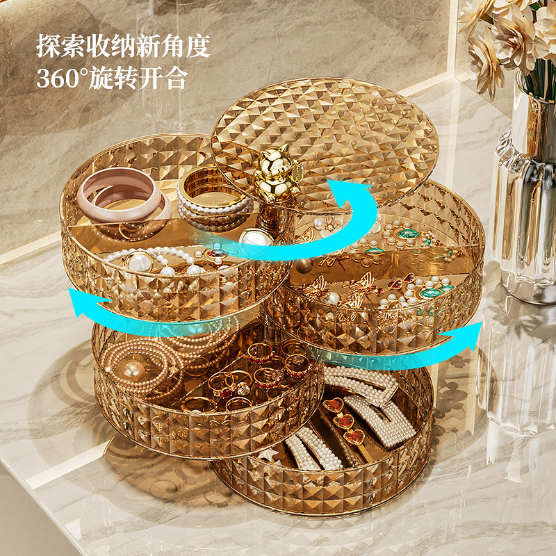 Desktop Rotating Jewelry Storage Box Home Dormitory Multi-Layer Cosmetics Storage and Organization Jewelry Box Dust-Proof Storage Rack