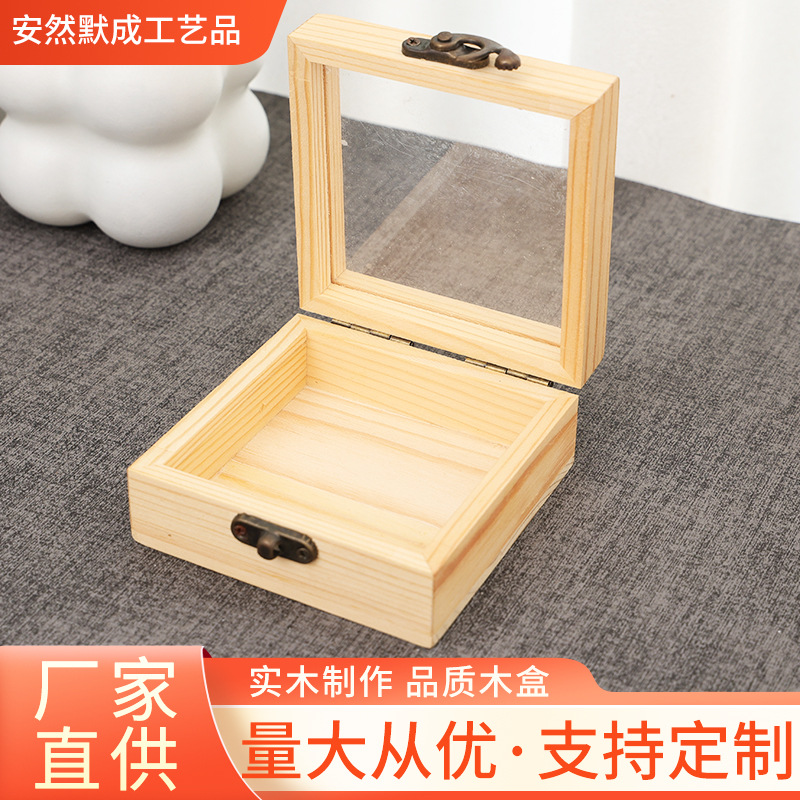 Wooden Box Souvenir Gift Box, Acrylic Flip-Top Solid Wood Storage Box, Eternal Flower Packaging Box Wholesale