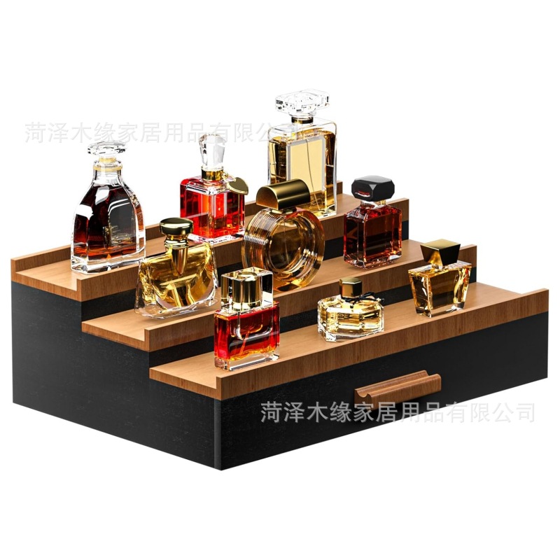 Cross-Border Multi-Layer Wooden Perfume Rack with Drawer Storage Jewelry Box Display Stepped Perfume Organizer Base