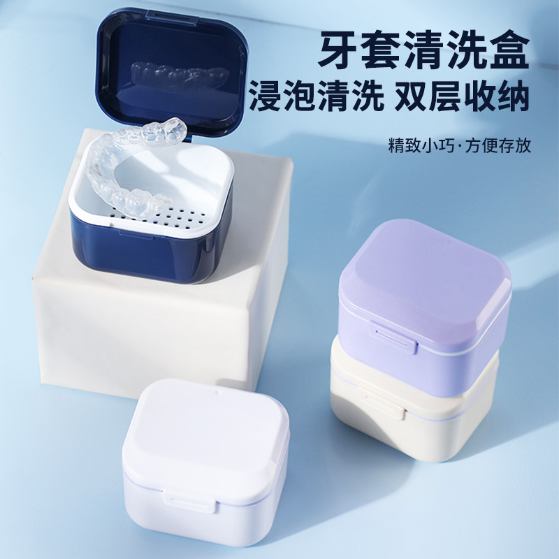 New Braces Cleaning Storage Box Thickened Portable Hollow Storage Box Double Layer with Lid Soaking Cleaning Box Jewelry Box