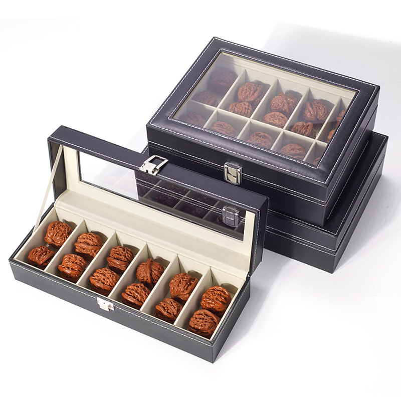 Large-Capacity Walnut Storage Box Household Storage Box Toy Bracelet Long String Storage Box Jewelry Box Glass Lid Box