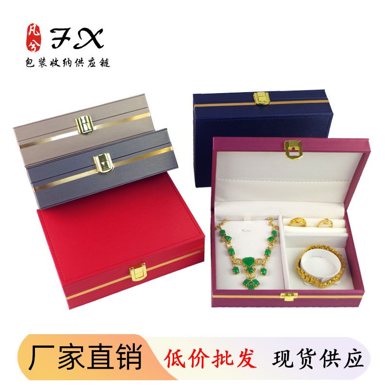 Brushed Leather Three Gold Jewelry Box Jewelry Box PU Leather Packaging Box Wedding Ring Necklace Bracelet Pendant Jewelry Gift Box