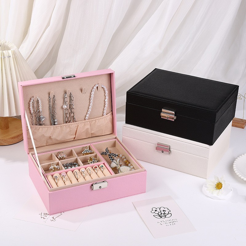 Double-layer large capacity PU jewelry box earrings necklace ring storage box Watch bracelet jewelry storage box