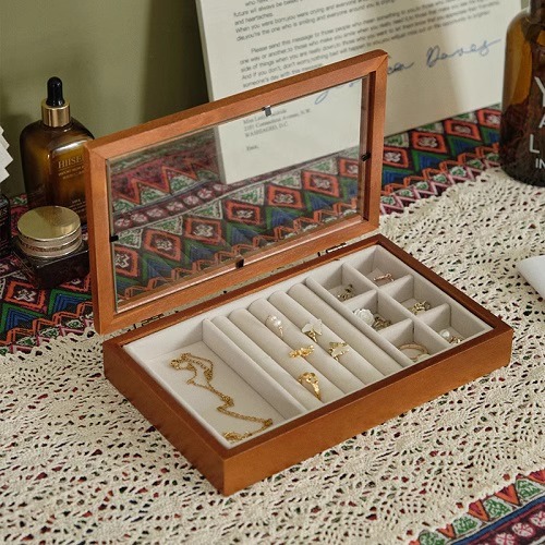 Desktop Solid Wood Jewelry Storage Box Dust-Proof Necklace Ring Earrings Display Box Bracelet Jewelry Jewelry Organization Retro