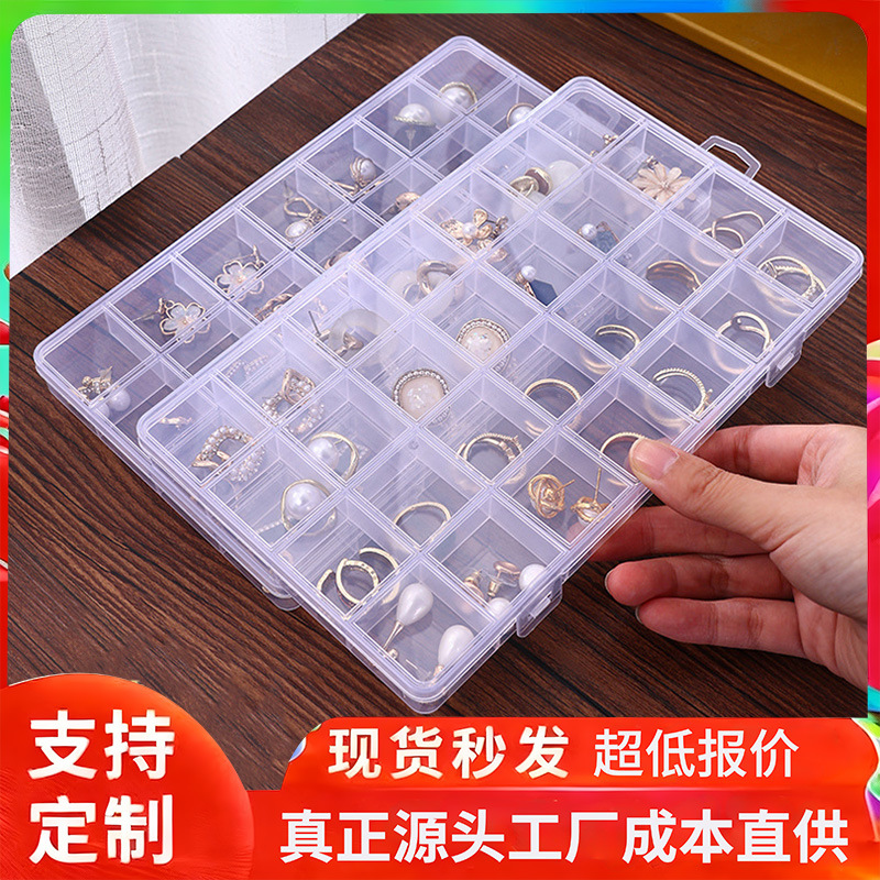 Jewelry Storage Box 28 Fixed Anti-string Jewelry Split Box Transparent Plastic Earrings Earrings Box Ring Storage Box