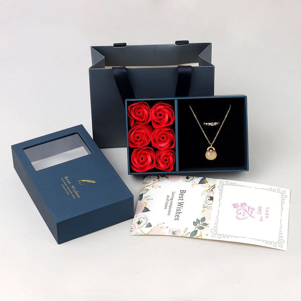 Factory spot six roses gift box ring necklace earrings jewelry box heaven and earth cover jewelry packaging box