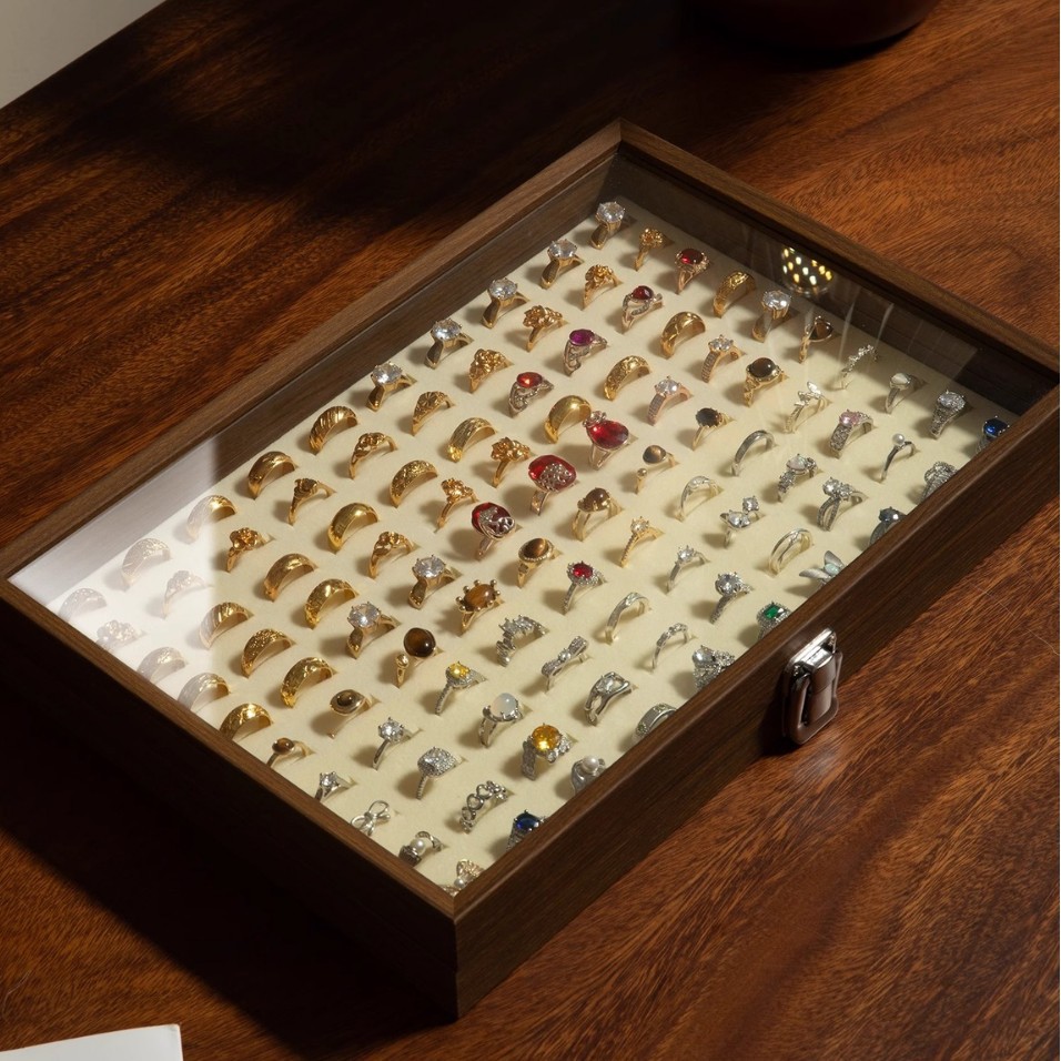 Ring Display Plate High-grade Exquisite Wooden Large-capacity Ring Storage Row Plate New Chinese-style 100-position Storage Box