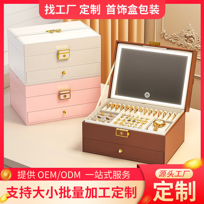 Customized Leather Jewelry Box, High-End Multi-Layer Diode Luminous Jewelry Three-Gold Storage Box, Multi-Grids Storage Box