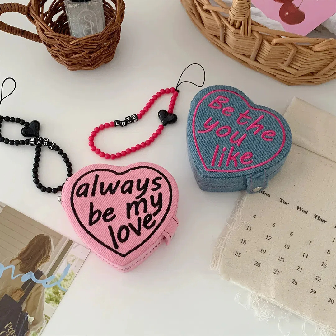 Heart-Shaped Portable Travel Jewelry Necklace Earrings Ring Storage Box Zipper Bag Jewelry Ready Storage Light Luxury Style