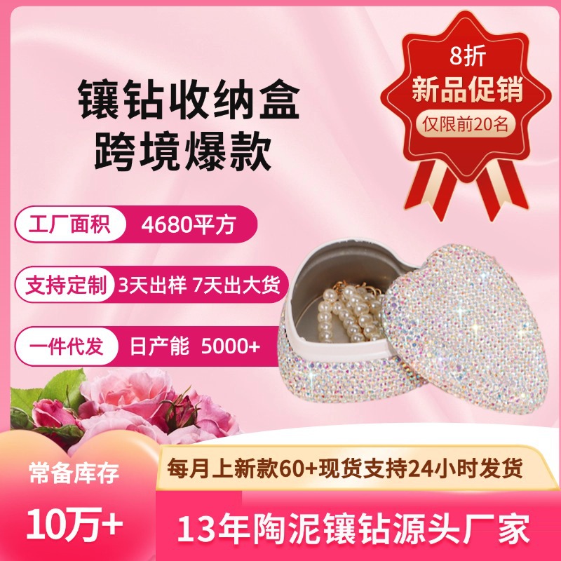 Luxurious Heart-Shaped Diamond-Encrusted Tinplate Box for Valentine's Day Gift-Giving Clay Rhinestone Flip-Top Jewelry Box Storage Box