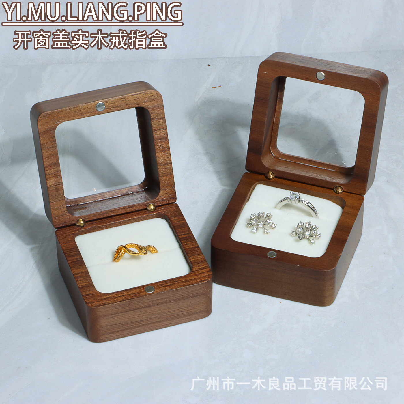 Cross-Border Wooden Jewelry Box Portable Travel Ring Box Solid Wood Earrings Earrings Box Mini Jewelry Storage Box