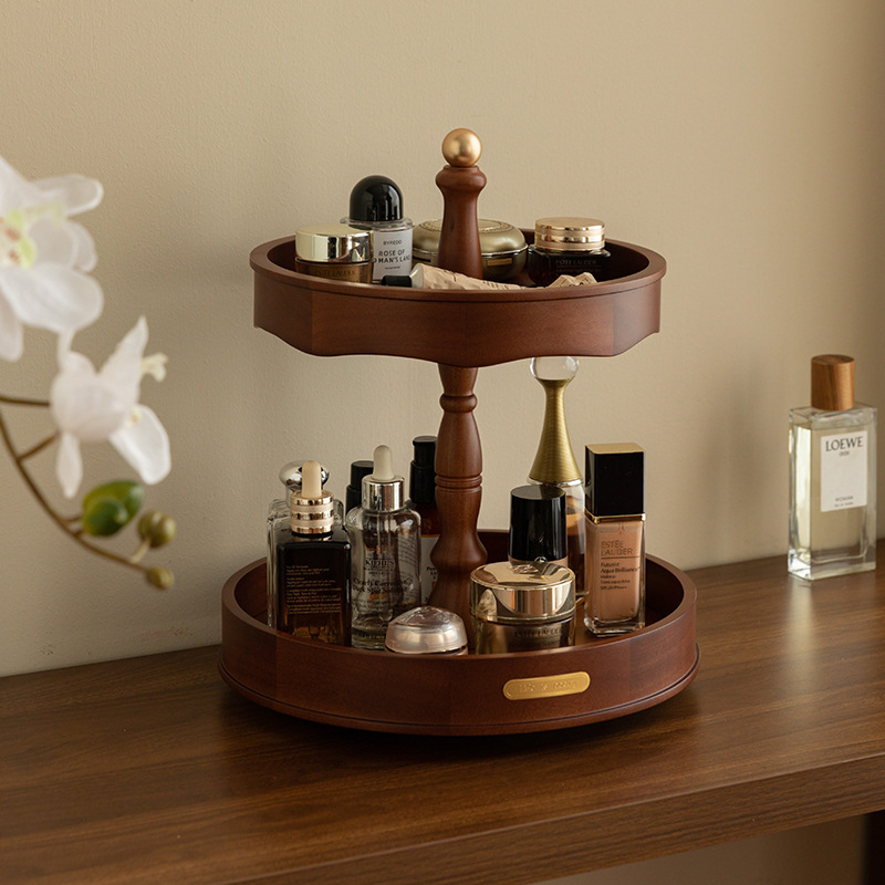 Cosmetics Storage Box Desktop High-End Wooden Rotating Storage Skin Care Products Perfume Dressing Table Storage Rack Jewelry Box
