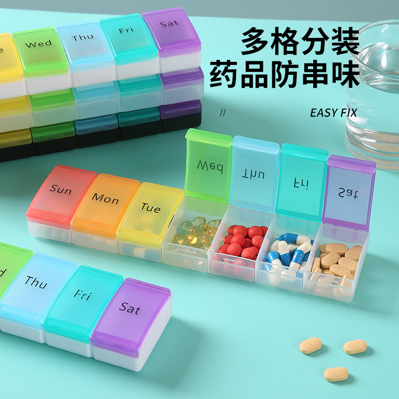 Cross-Border Portable 7-Compartment Medicine Box, One-Week Medicine Large Compartment Storage Box, Mini Jewelry Jewelry Box, Sewing Box