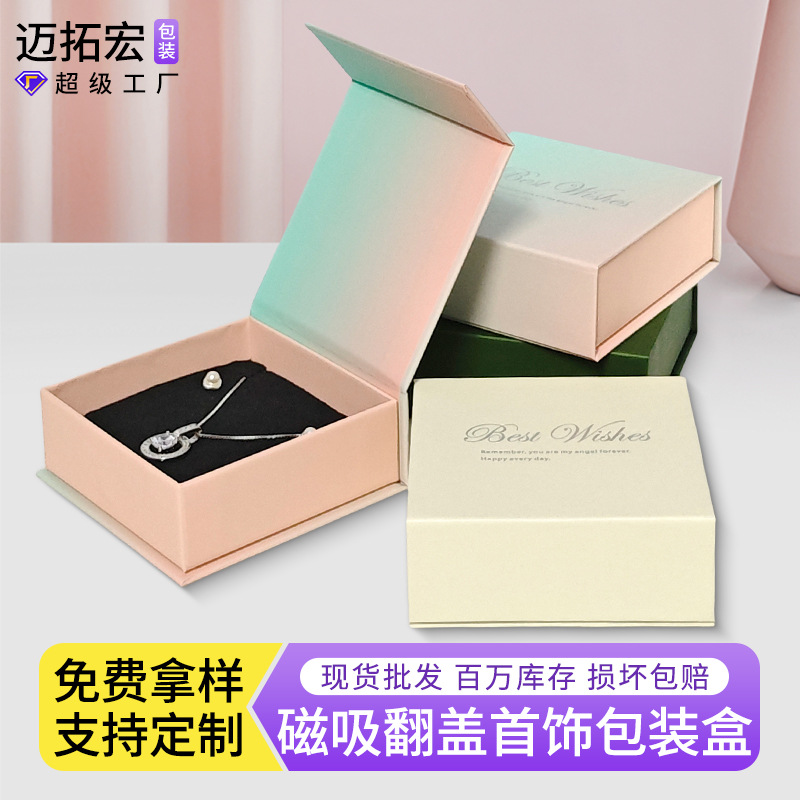 Spot High-End Jewelry Flip-Top Gift Box Necklace Ring Earrings Storage Box Magnetic Packaging Box Book-Shaped Box