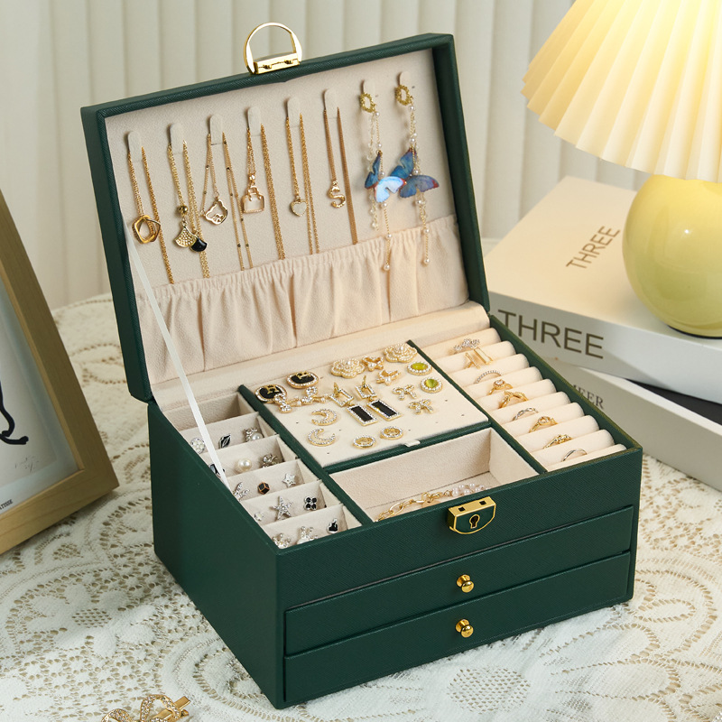 PU Leather Jewelry Box Double Wooden Jewelry Jewelry Box Princess Jewelry Storage Box Cosmetic Box Large
