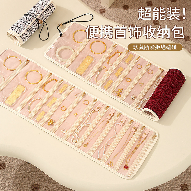 Korean-Style Gold Jewelry Box, Similar to Si Feng's Model, Storage Roll-Up Bag, Travel Portable Gold Jewelry Roll-Up