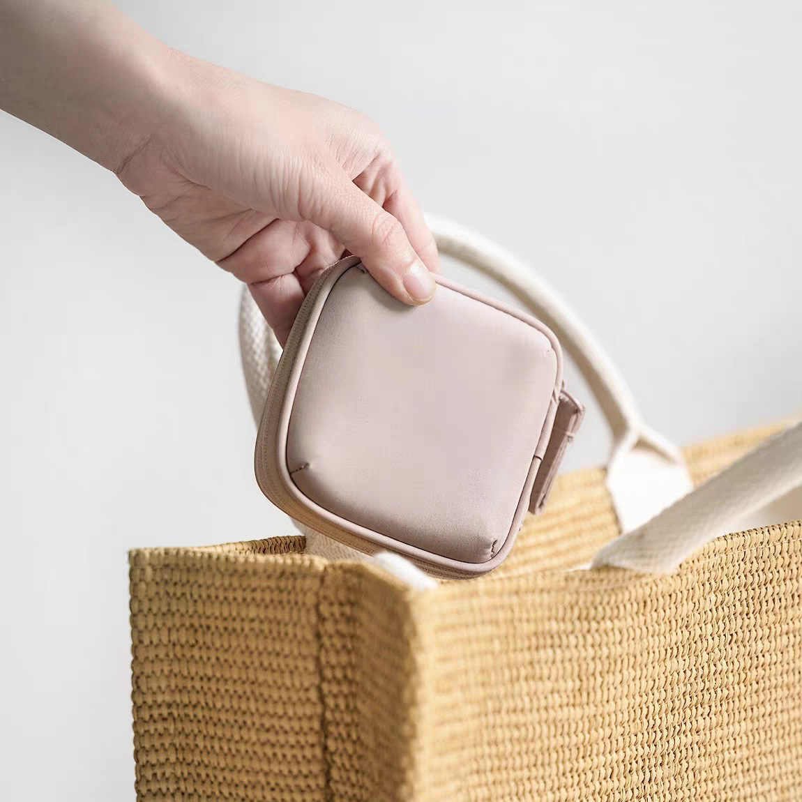 New Polyester Fiber Jewelry Box Jewelry Bag Outing Small Items Storage Box with Layered Leather Pink Beige Jewelry Bag