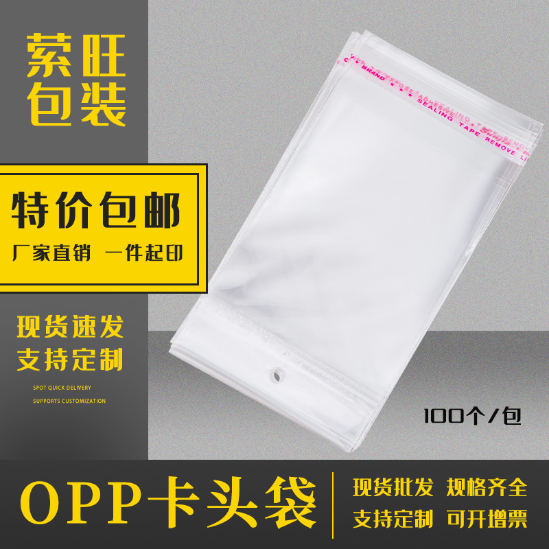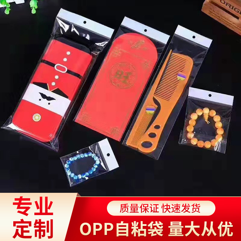 in stock wholesale opp transparent plastic self-adhesive bag hanging hole wearing armour jewelry bag long card bag stationery packaging