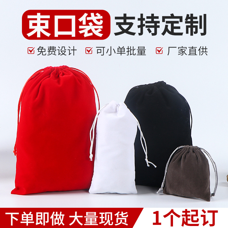 Velvet Bag Drawstring Flap Pocket Pants Can Be Printed with Logo Jewelry Velvet Flannel Bag Velvet Deer Velvet Hair Dryer Storage Bag Customization