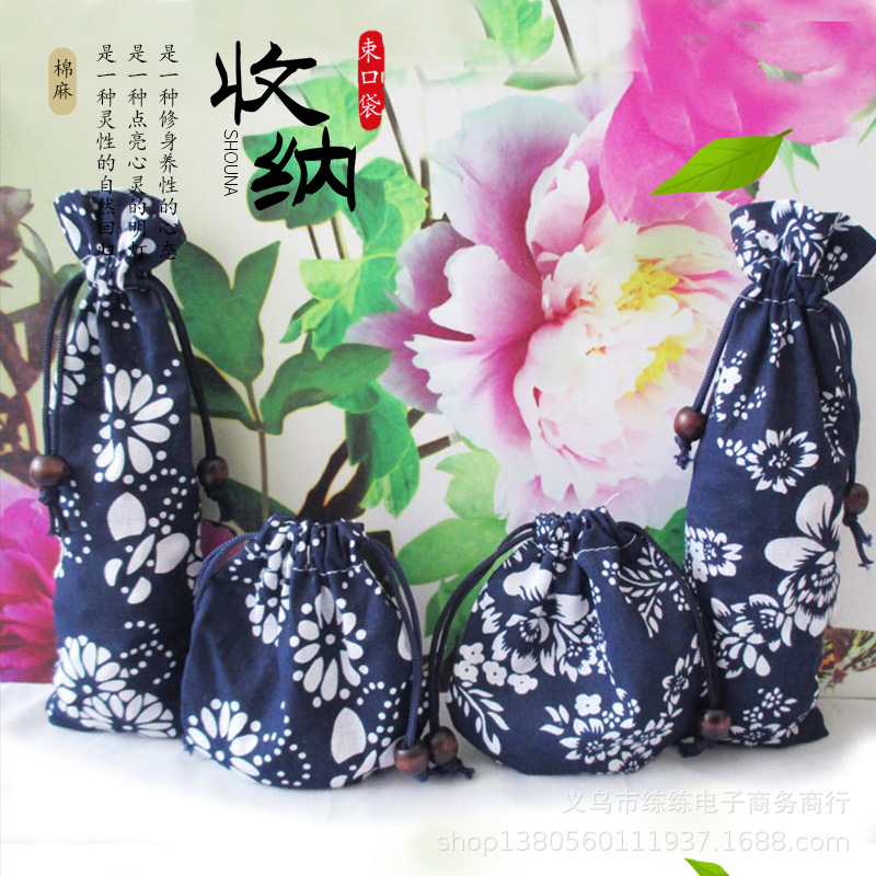 Wholesale Large Wooden Bead Packing Bag Handstring Buddha Bead Wen Play Plate Play Bag Cotton Jewelry Cloth Bag