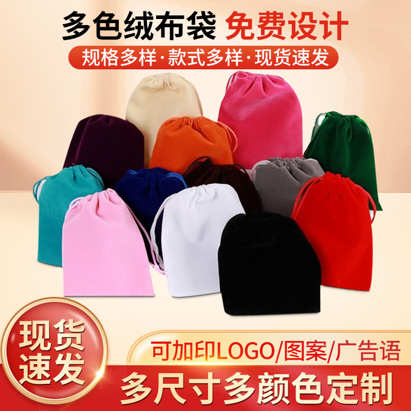 Solid Color Velvet Drawstring Jewelry Pouch Velvet Drawstring Bag Jewelry Velvet Bag Earphone Storage Bag with Logo Print