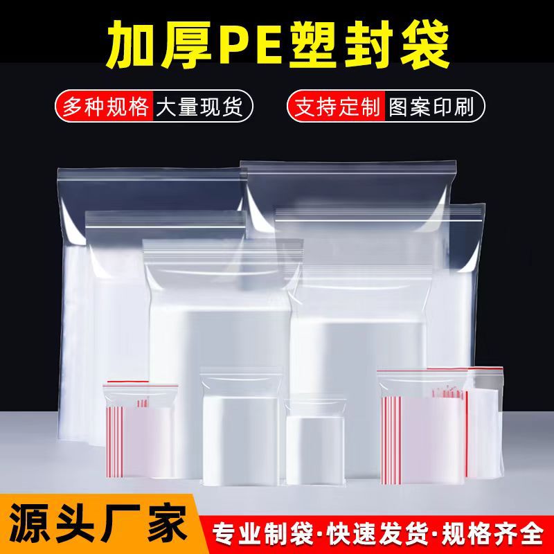 Pe Ziplock Bag Thickeneded Transparent Seal Bag Seal Waterproof and Moisture-Proof Jewelry Industrial Bag Plastic Packaging Bag Wholesale