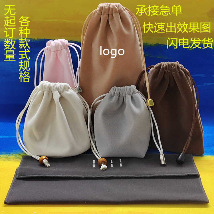 in stock Direct Supply Flannel Bag Jewelry Packaging Drawstring Bag Mobile Power Headset Storage Bag Printed LOGO