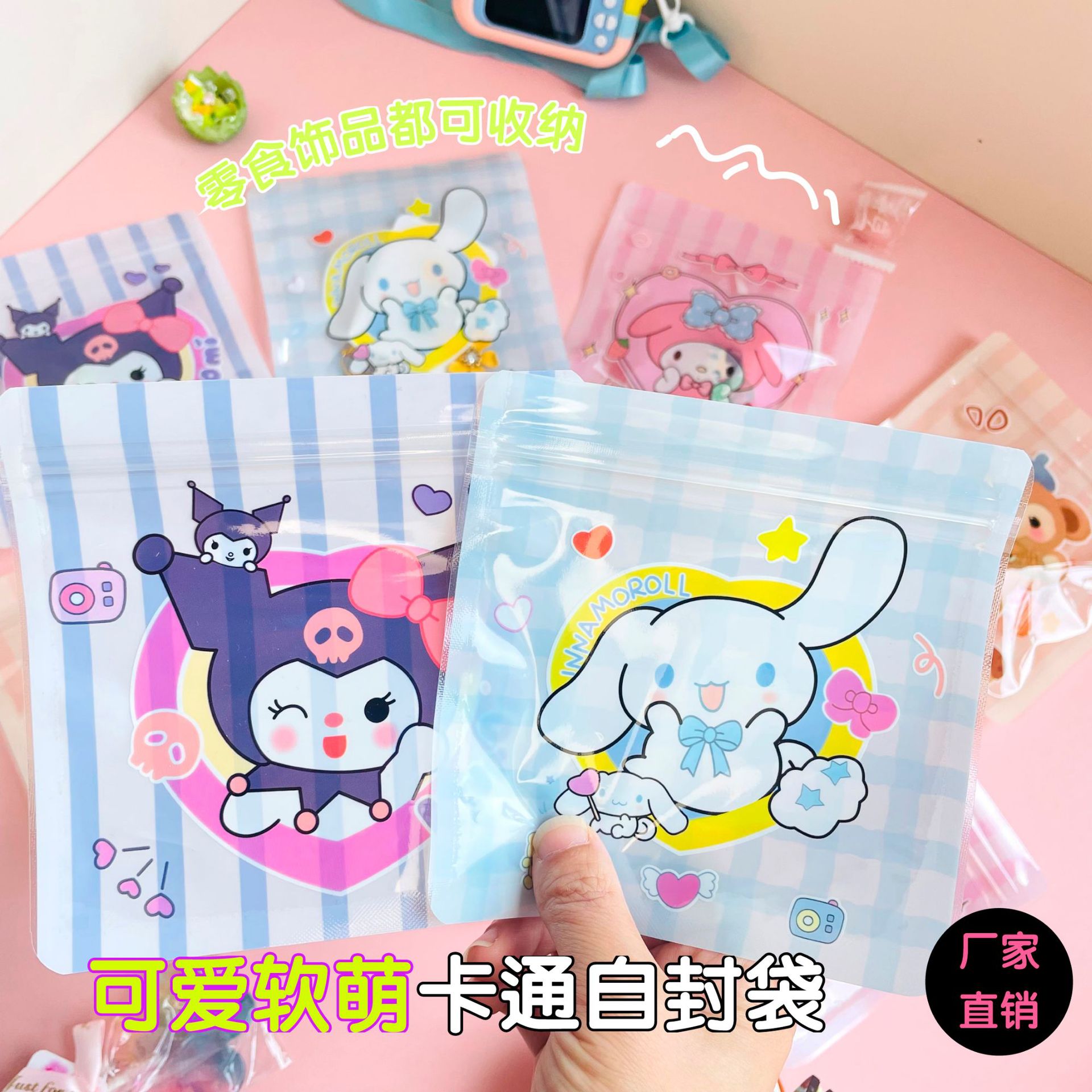 New Cartoon Ziplock Bag Ins Wind Wax Bottle Sugar Bag Snack Cookie Candy Packaging Bag Small Jewelry Storage Bag