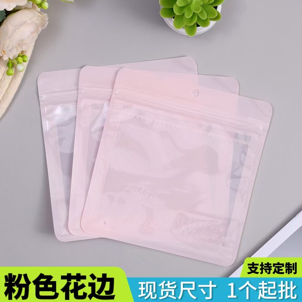 Pink Small Lace Jewelry Clothing Plastic Ziplock Bag Pet Transparent Window Universal Packaging Bag Blank Without Words