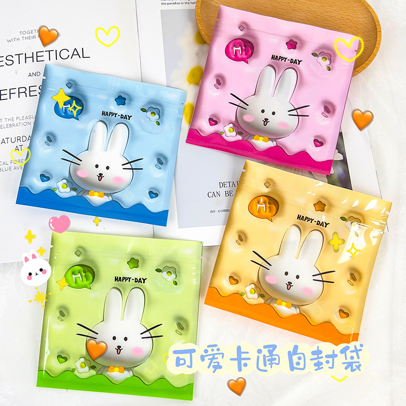 Cute cartoon self-sealing bag creative rabbit snacks candy plastic packaging bag high color value hairpin jewelry storage bag