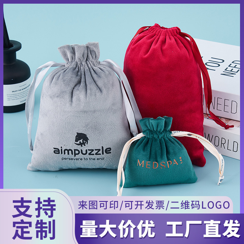 Wholesale Velvet Drawstring Pocket Gift Jewelry Storage Bag Velvet Bag Custom Plus Logo Velvet Jewelry Bag
