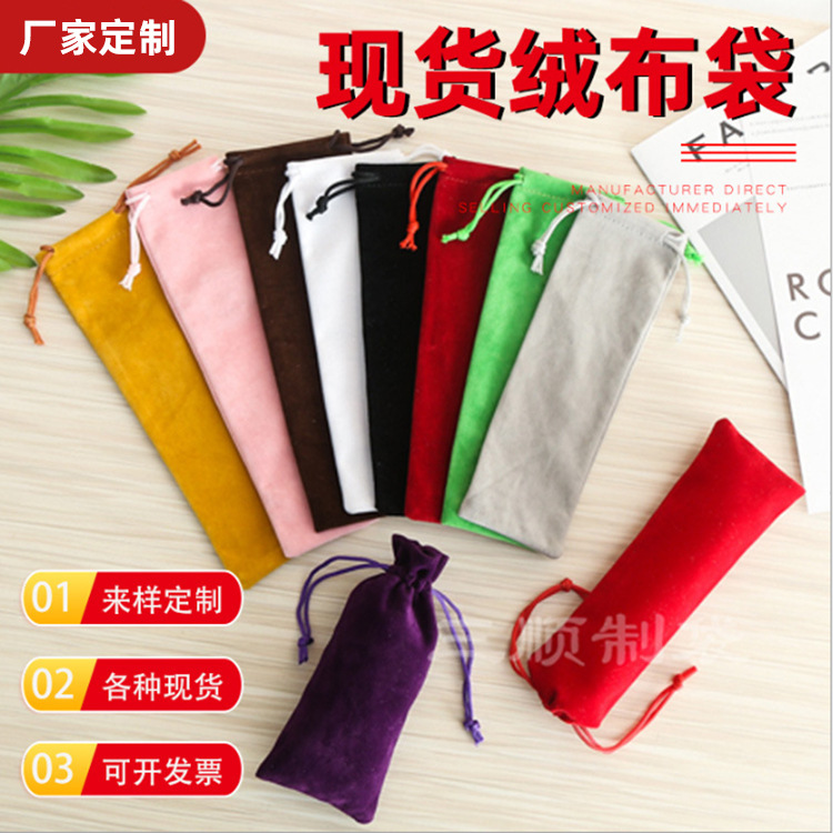 Manufacturer Wholesale Jewelry Velvet Bag Headphone Storage Small Cloth Bag Long Velvet Drawstring Pocket Velvet Bag Ready Stock