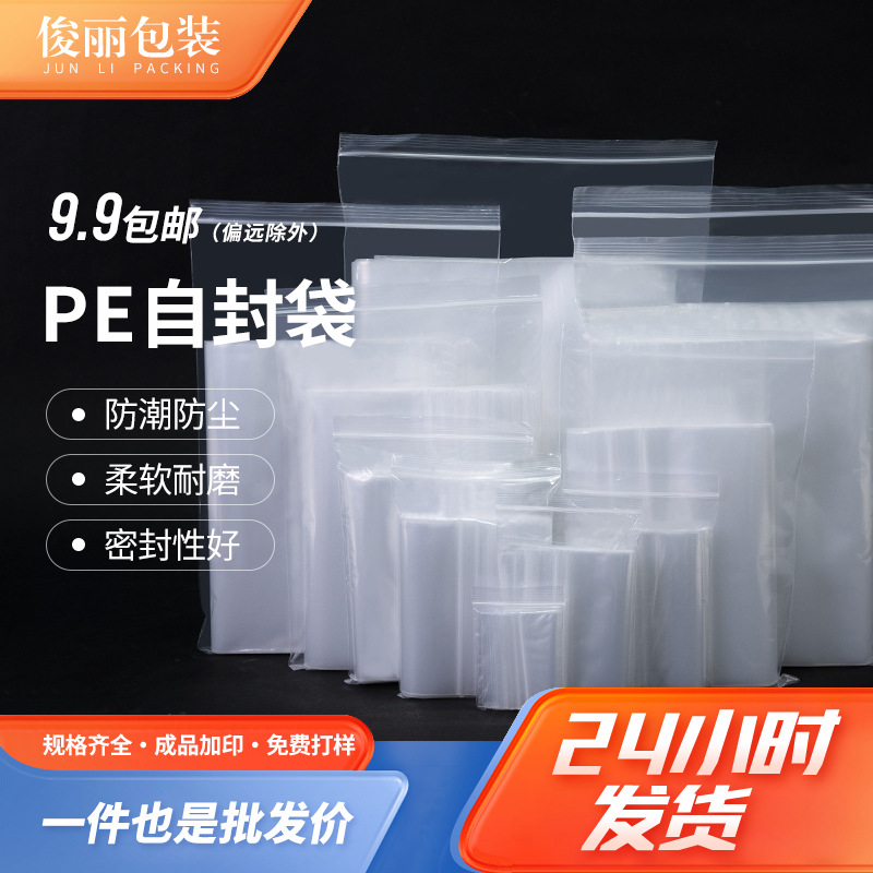 Customized Pe Transparent Ziplock Bag Food Grade Thickeneded Sealed Plastic Packaging Bag Jewelry Ziplock Bag Printing Logo