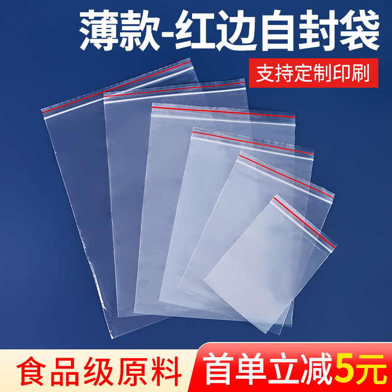 Thin Red Edge Ziplock Bag Transparent Pe Plastic Food Seal Bag Jewelry Small Packaging Bag Printed Logo