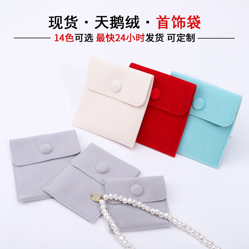 Wholesale Microfiber Envelope Flap Bag Necklace Jewelry Bag Double-Sided Velvet Snap Button Dustproof Storage Bag Custom Logo